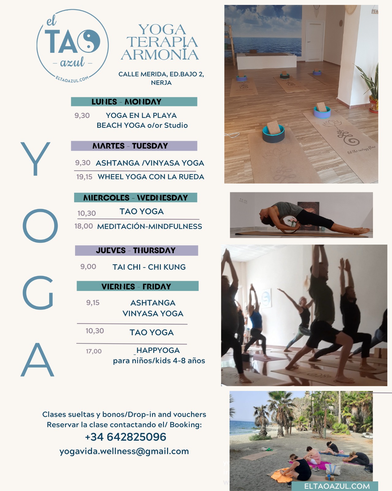 • El Tao Azul is a yoga studio located in Nerja, Spain.